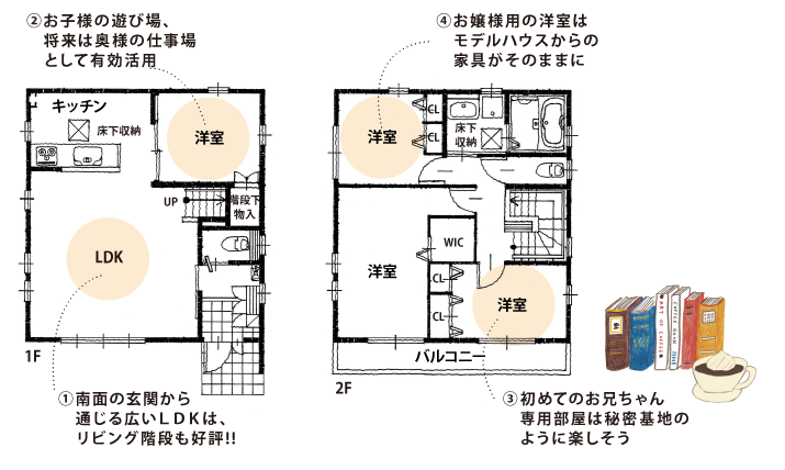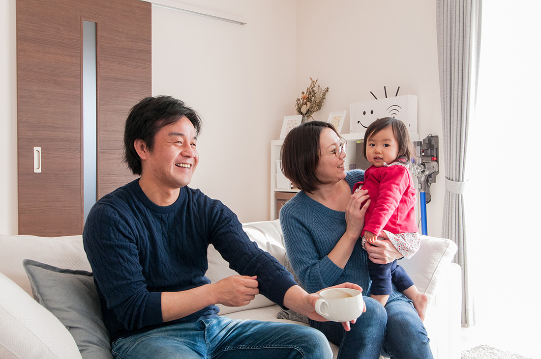 お2人で住宅展示場を回り、なかなか決まらずにいたところ、たまたま立ち寄ったのが、この分譲物件でした。「営業担当の丁寧な対応が嬉しかったし、間取りが家族構成にぴったり」。奥様が目を付けたのは、キッチン隣の洋室。1歳3ケ月のお嬢様の遊び場にすれば、家事をしながらでも目が届きます。また小学2年のお兄ちゃんのTVゲーム用にも重宝とか。「ゆくゆくは私の仕事部屋になる予定」と奥様。税理士補助の資格を持ち、今も在宅仕事をしており「子育てが落ち着いたら、もう少し頑張るつもりです」と、改めて間取りの良さを実感しているご様子です。また駐車場が3台分あるのにも惹かれました。東北一円に出張するご主人の社用車とマイカー、来客用とをしっかり確保できた訳です。