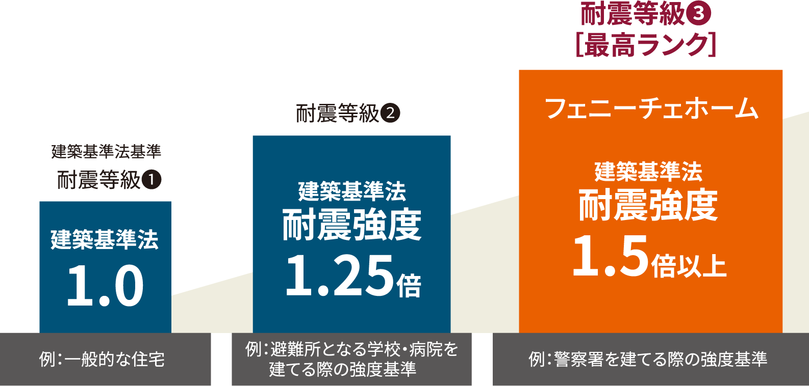 建築基準法の耐震強度の1.5倍(耐震等級3)とは、災害時の拠点となる警察署や消防署と同じ強度で、