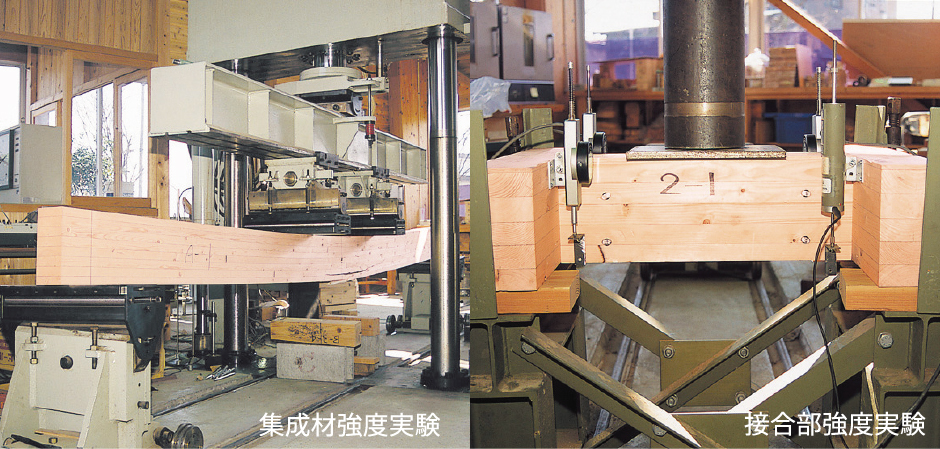 実際に専用金物と構造用集成材を接合したもので、接合強度の実験を行って確認済み。その耐力構造の安全性は、実証されています。